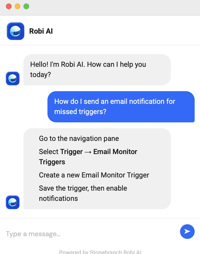Stonebranch provides a centralized automation hub that coordinates workloads across on-prem, cloud, containerized, and hybrid environments. Major Stonebranch AI use cases are: