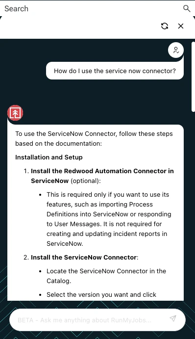 RunMyJobs now has an AI assistant that can answer questions about the software and related questions. See the figure below for an example. Users can ask basic questions (e.g., “How do I create a job definition?”) or more complex ones. As a follow-up, RunMyJobs has introduced agentic AI capabilities, RangerAI, to autonomously plan and execute workflows across SAP and non-SAP systems.