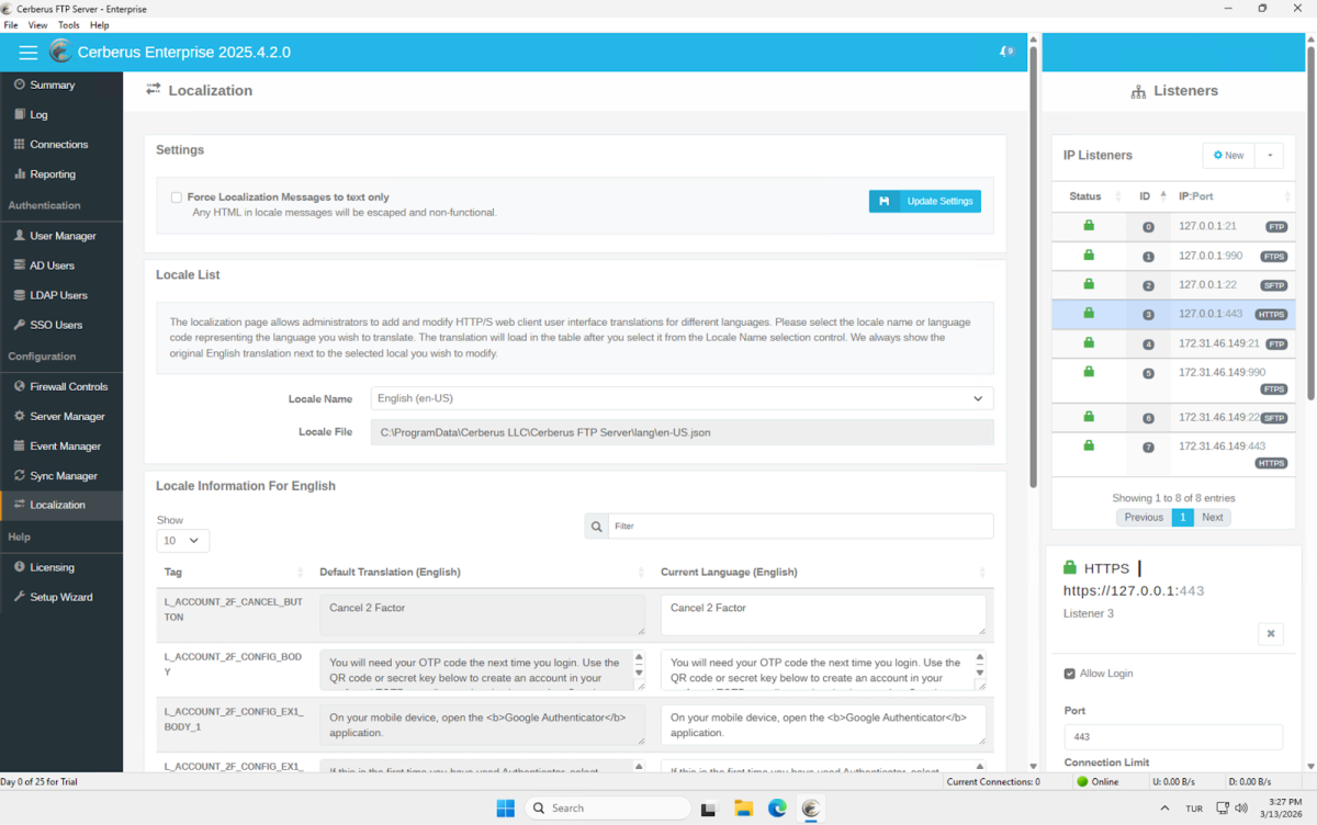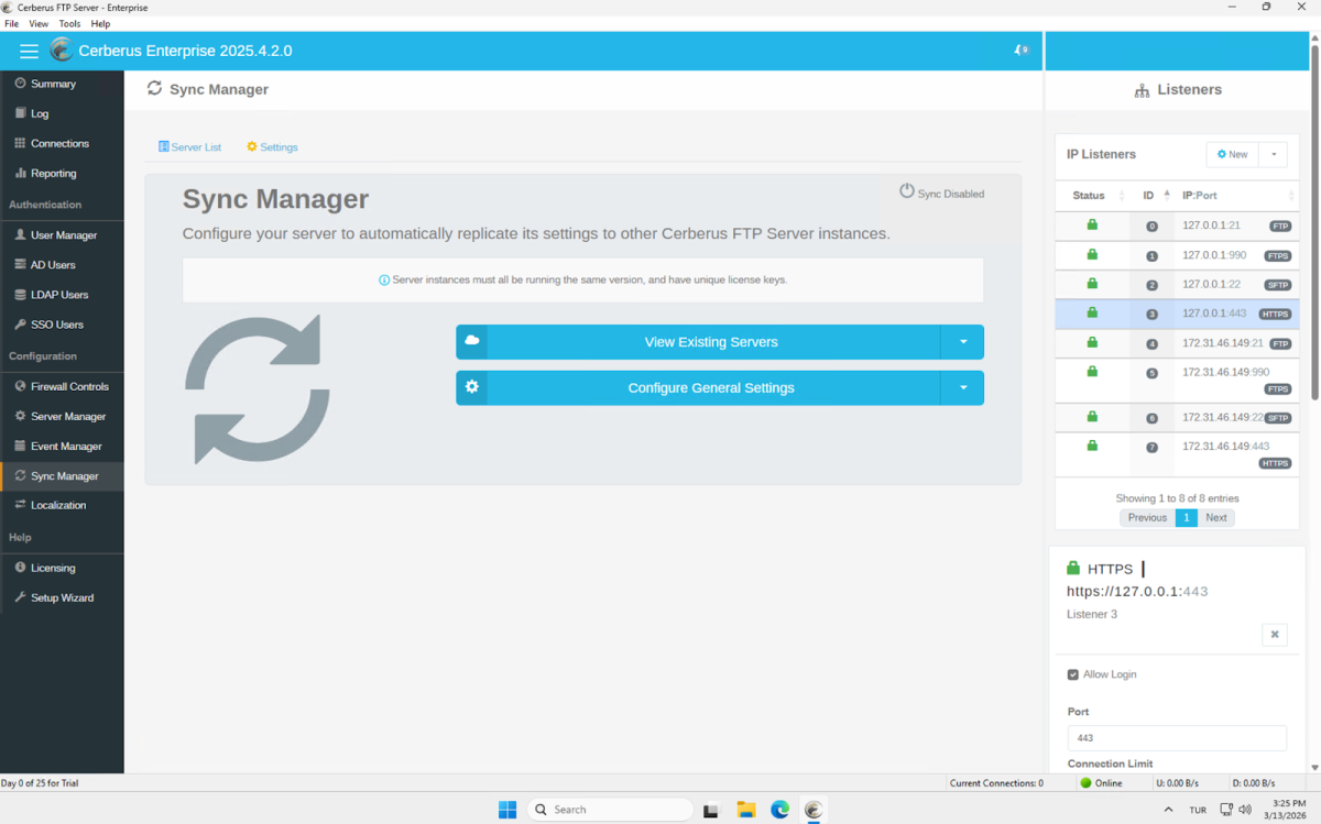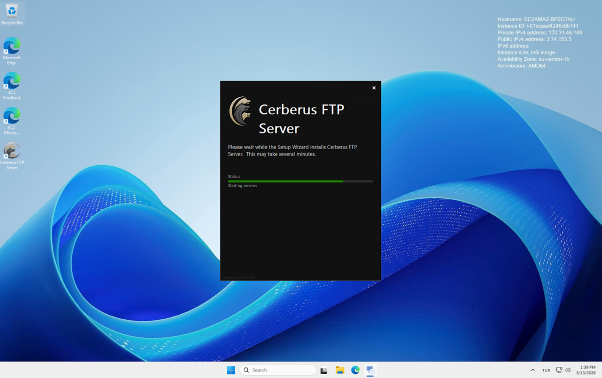 - Cerberus FTP Server is Windows-only. Supported server operating systems are Windows Server 2016, 2019, 2022, 2025, and Windows 10/11. Installation requires provisioning a Windows machine, running an installer, and providing service account credentials. The admin panel is a native desktop application running on the server; it is not accessible remotely. We provisioned a Windows Server 2025 instance on AWS for testing.