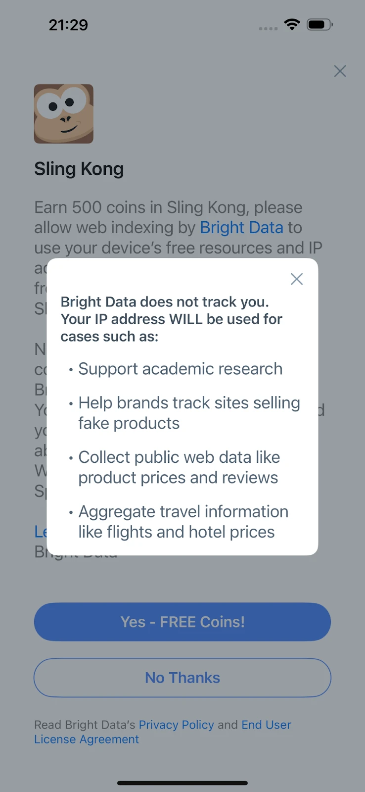 Bright Data shares 120 of apps on their website. Apps like Bright VPN are certified by 3rd parties on their disclosure and UX.16 We also downloaded these apps to see them in more detail: